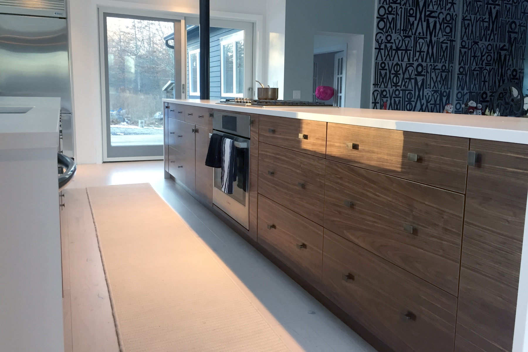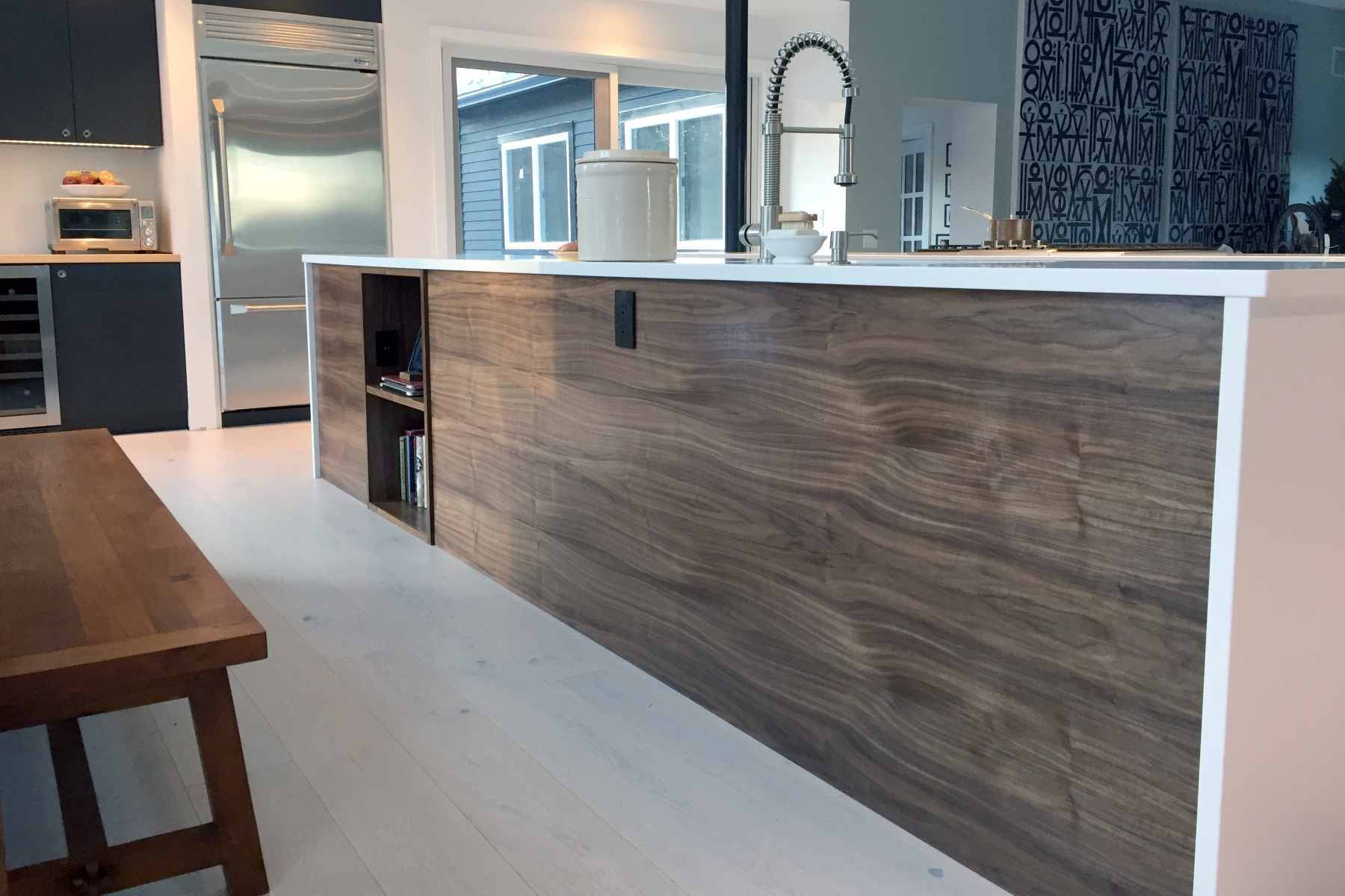 Featuring sequence matched Black Walnut and black lacquer, this open kitchen is designed for functional entertaining.